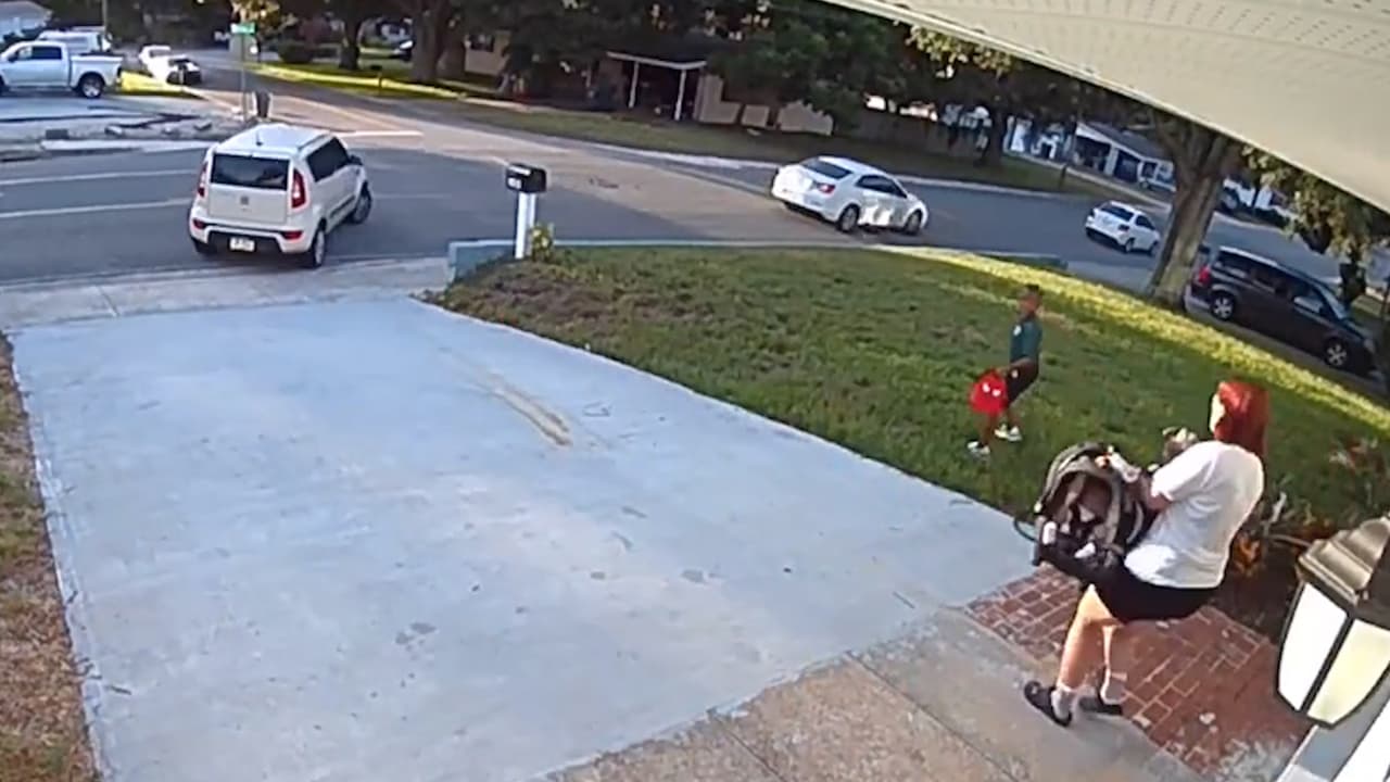 La mujer gritaba desesperadamente en el porche de la casa junto a sus dos hijos y llamó al 911. El robo quedó captado en video.