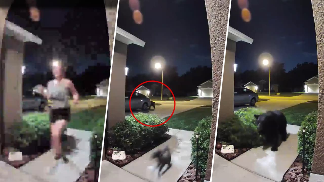 Un oso negro los persigue junto a su perro hasta la puerta de su casa y se salvan