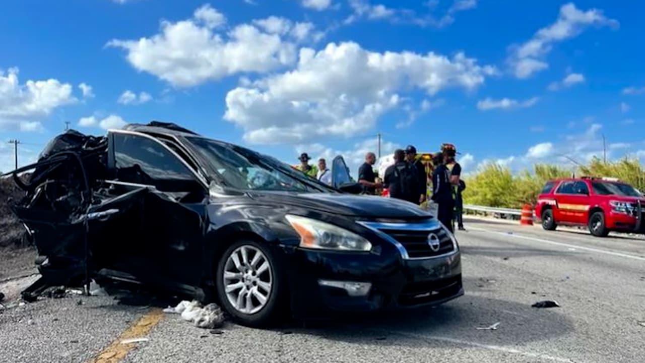 Un menor de edad murió y otras seis personas resultaron heridas cuando un camión con remolque se estrelló contra un automóvil en la U.S. 27 al sur de Florida.