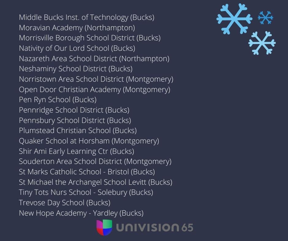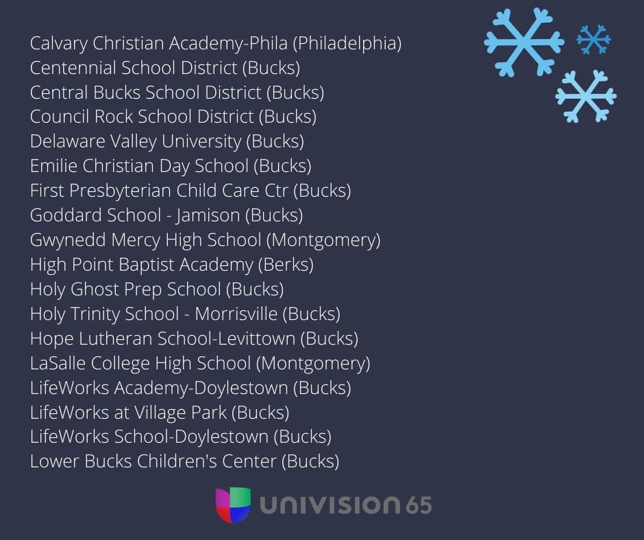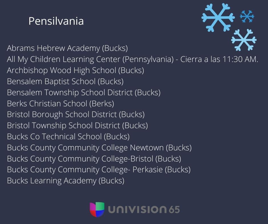 FILADELFIA- La posibilidad de acumulación nieve ha llevado a varios distritos escolares a cancelar las clases para el lunes, 2 de diciembre.