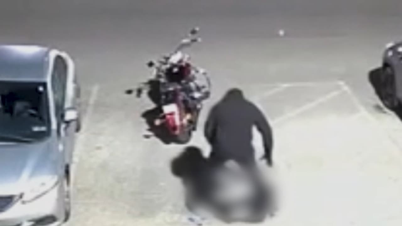 Una mujer que llevaba bolsas en la mano caminaba por el estacionamiento del lugar, de pronto recibió una patada en la espalda, lo que provocó que cayera al suelo, tirada e indefensa, siguió siendo golpeada y pateada por su agresor.