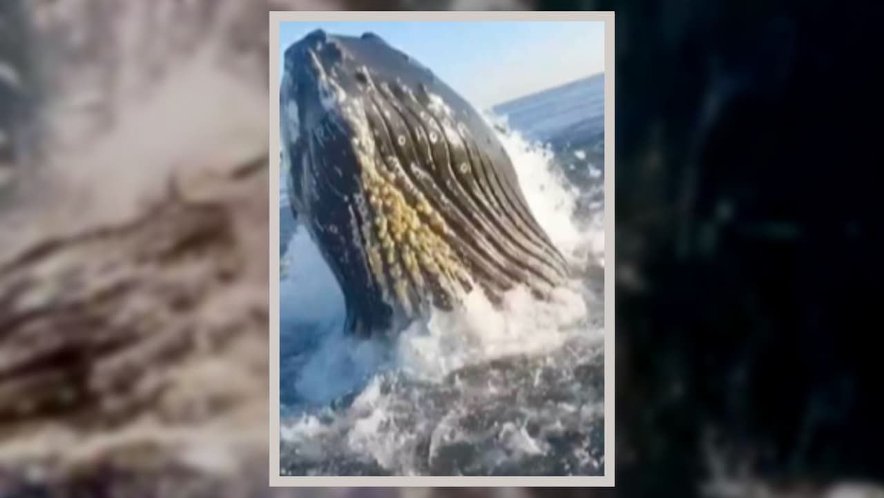 Ballena jorobada sorprende a padre e hijo pescando y todo queda captado en video