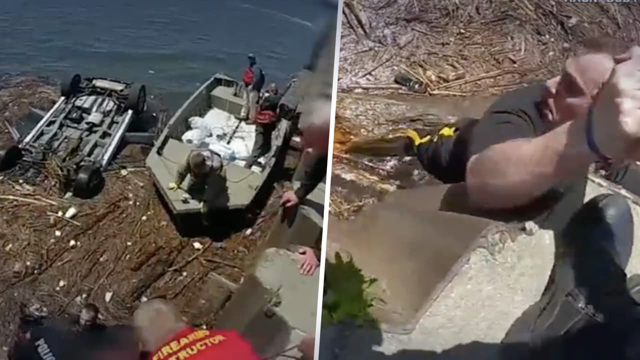 Conductora cae al río Delaware y así logran sacarla un grupo de policías y pescadores