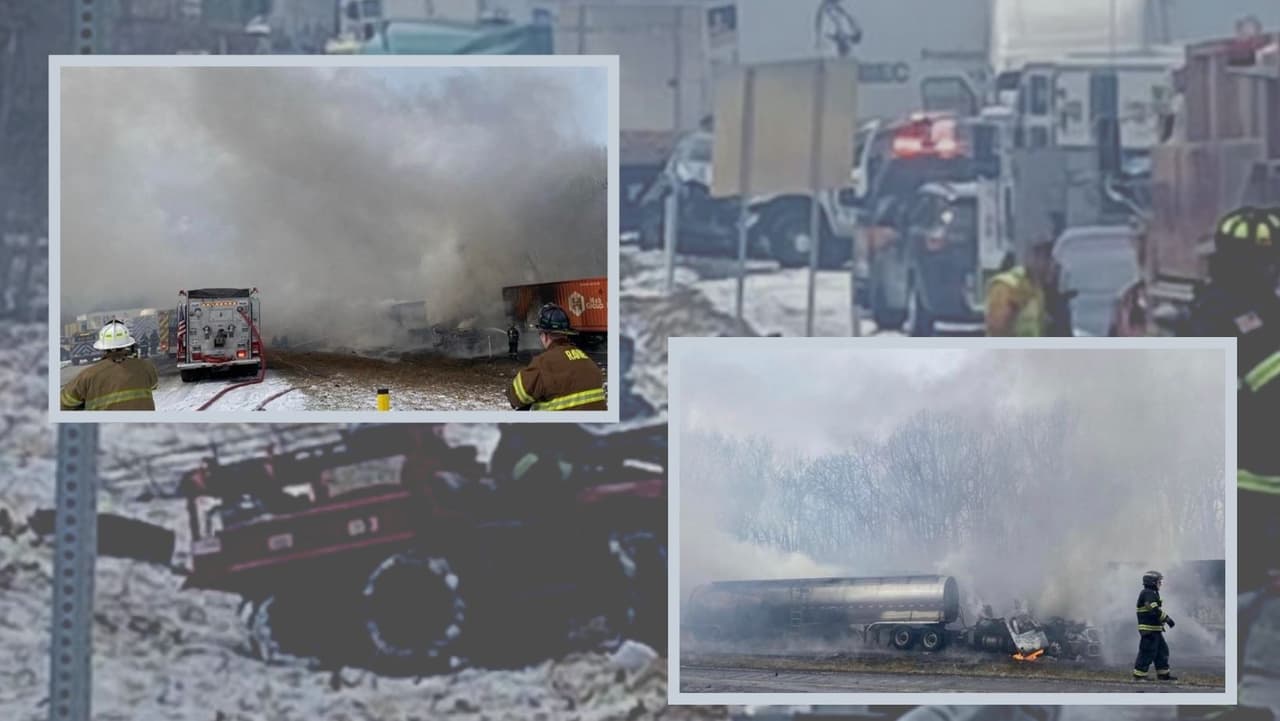 El video publicado en las redes sociales muestra que varios camiones y varios vehículos más pequeños fueron golpeados y al menos uno en llamas. El accidente ocurrió en los carriles hacia el norte de la I-81 en el condado de Schuylkill, cerca de la salida de Minersville.