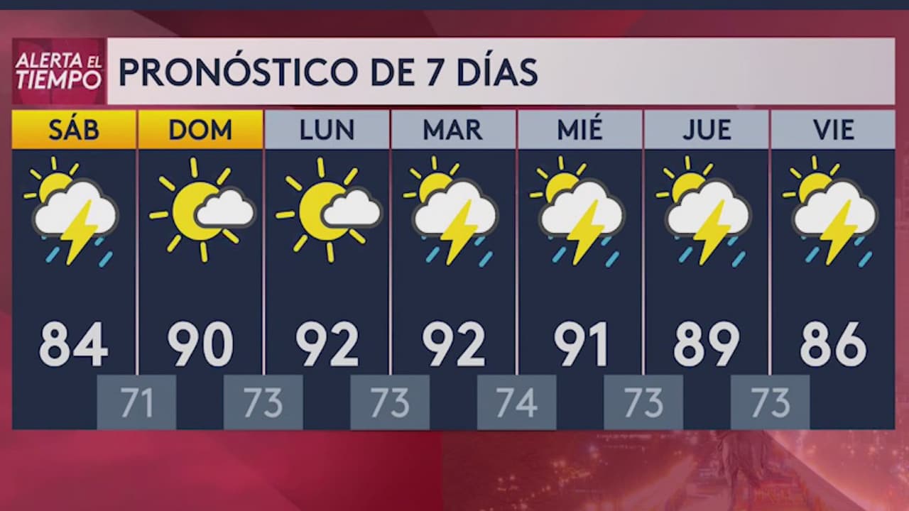 Es un viernes mayormente nublado con lluvias torrenciales ocasionales y tormentas que podrían provocar inundaciones repentinas. La máxima es de 81, cálido y húmedo. Para el fin de semana, algunas lluvias y tormentas eléctricas adicionales son posibles durante el día.