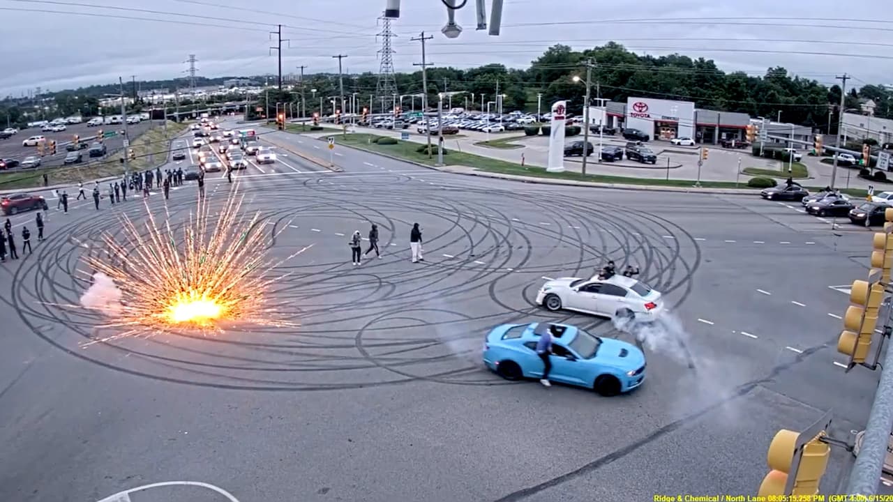 Cuatro autos hicieron donuts en plena vía pública ante 100 personas en Plymouth, Pensilvania. La toma de calle ocurrió la noche del 15 de junio y fue grabada con fuegos artificiales y techos llenos de espectadores. La policía busca identificar a los conductores.