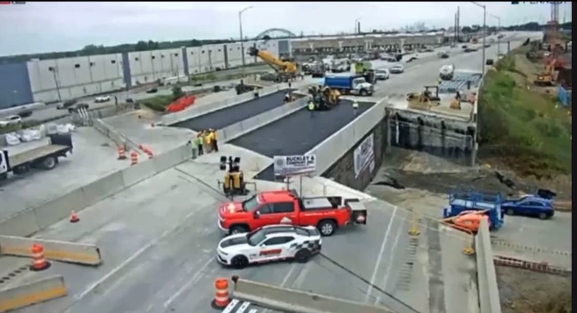 Dos carriles hacia el sur han estado cerrados durante varias horas mientras los equipos de construcción trabajan para reemplazar una placa de cubierta que se cayó.