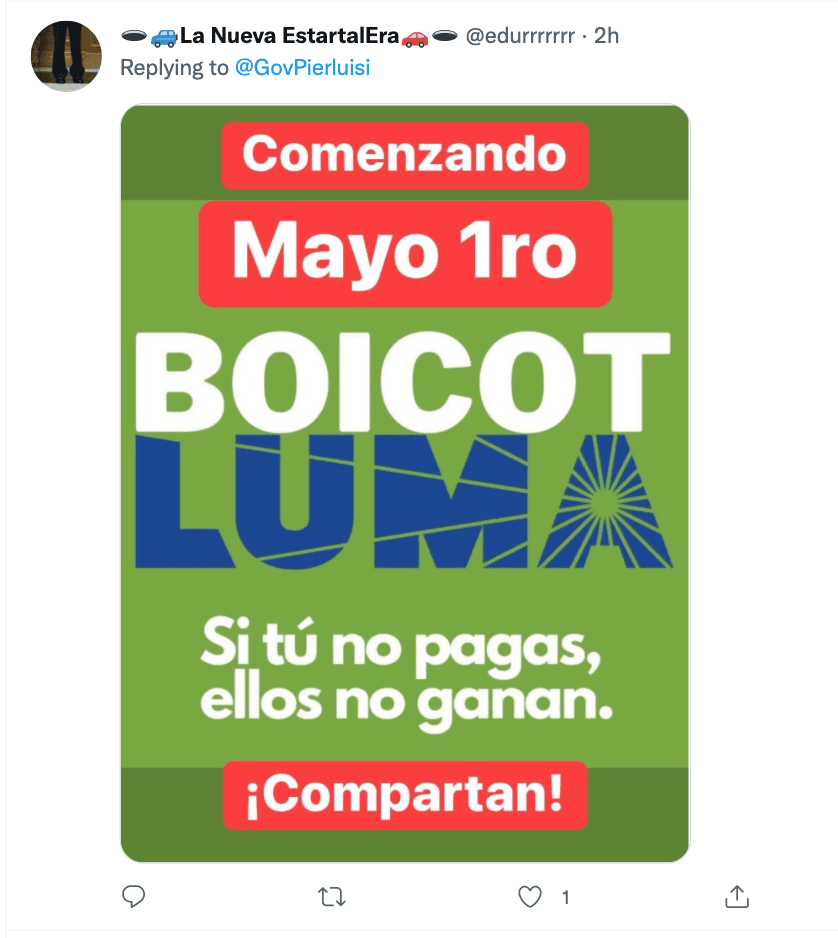 Entre un desahogo y otro, no faltó quien promoviera la campaña contra LUMA Energy, la empresa privada que administra el servicio de energía eléctrica en la Isla.