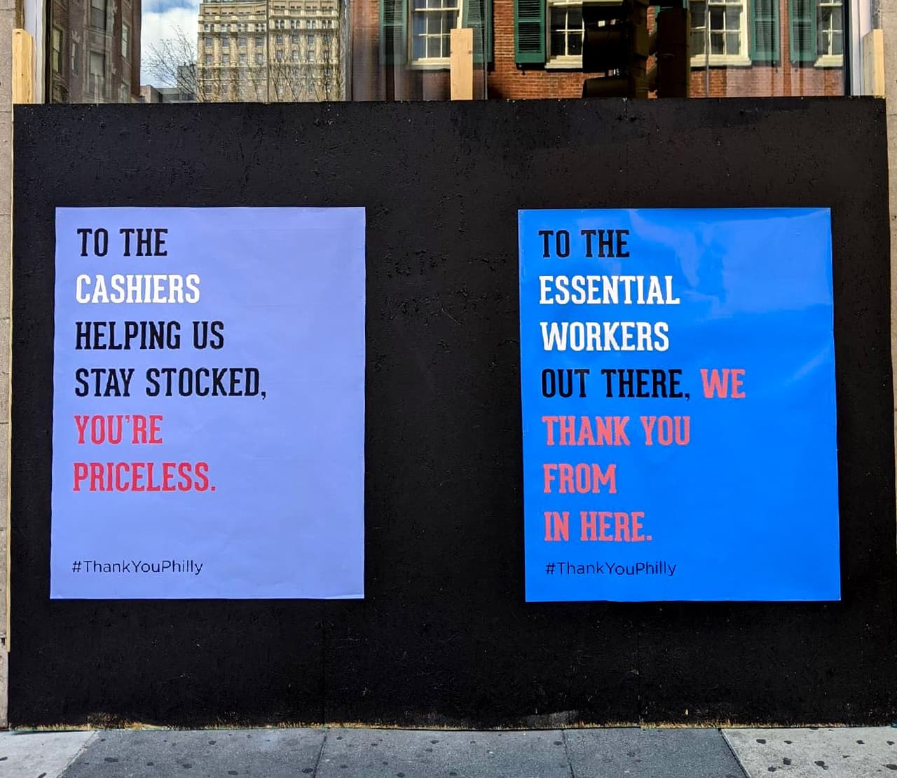 En estos tiempos inciertos, han aparecido signos de esperanza en Filadelfia. Los edificios oscurecidos por la pandemia del coronavirus tienen un toque de color y un mensaje alentador; gracias.