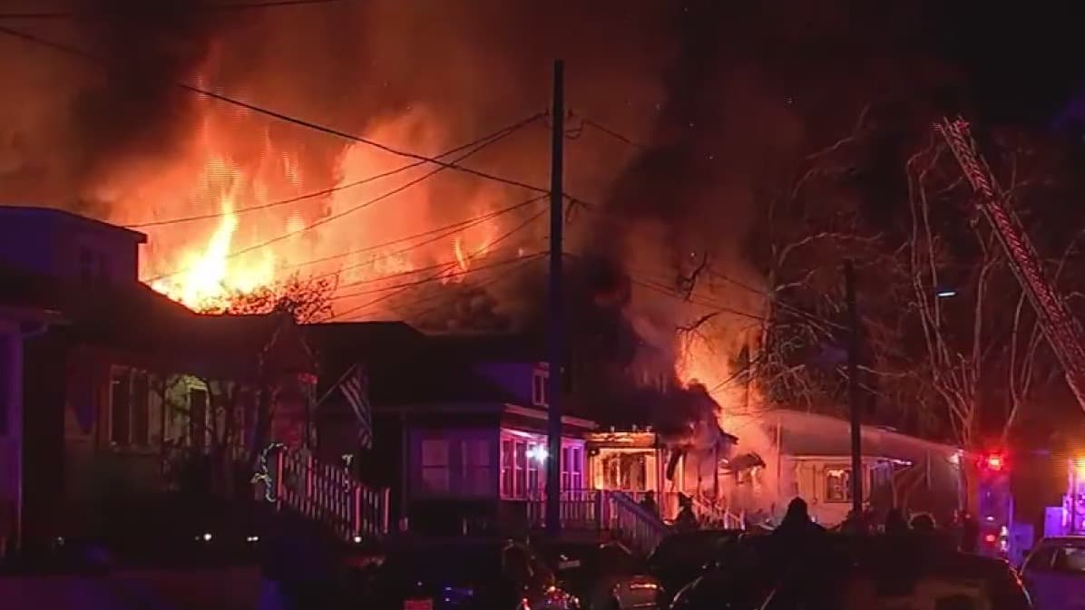 El incendio comenzó con una explosión alrededor de las 7 p.m. el sábado en la cuadra 800 de Carteret Avenue en Trenton, Nueva Jersey. Las autoridades confirman que cuatro bomberos resultaron heridos tratando de controlarlo. Uno por quemaduras en el rostro y los otros resultaron heridos al derrumbarse parte de la estructura. Fueron llevados al hospital y desde entonces han sido dados de alta.