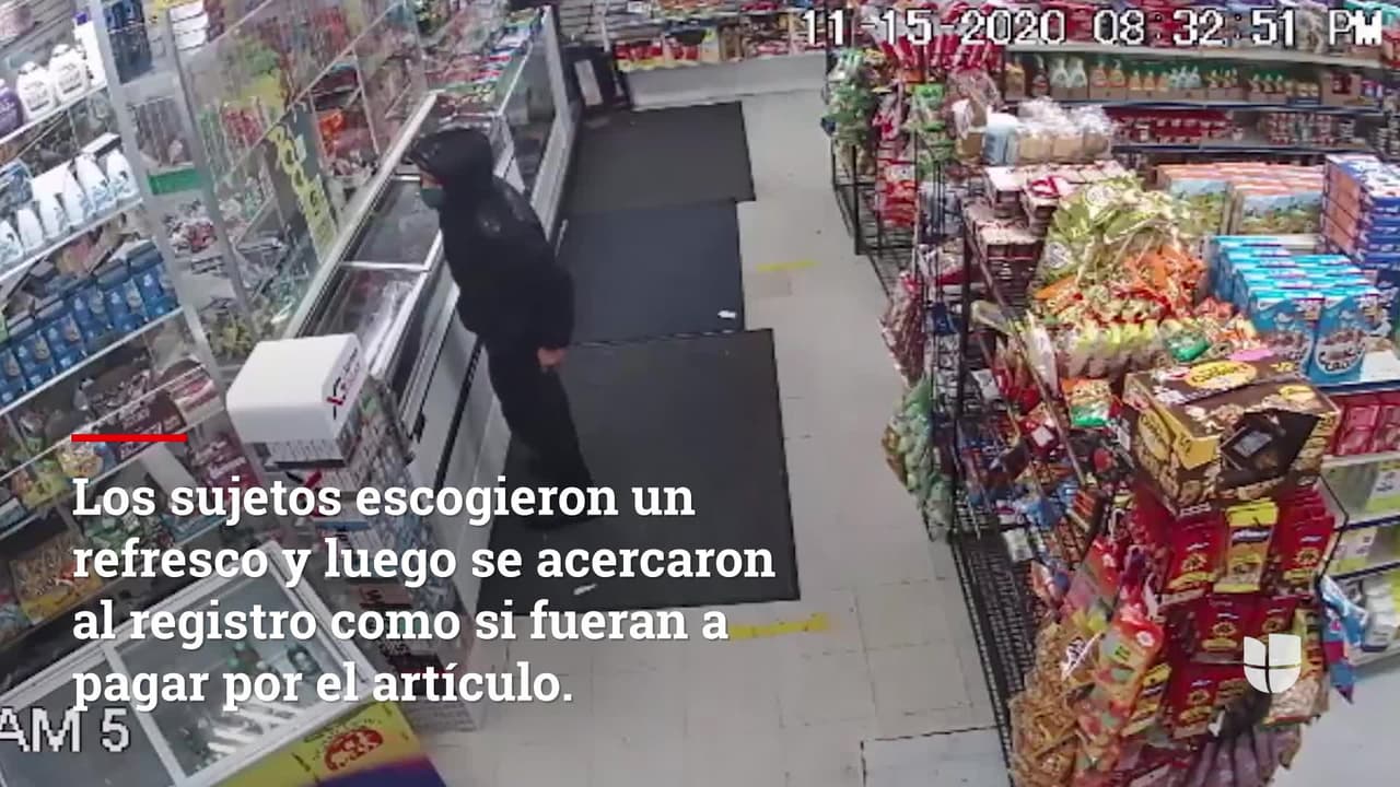 Las imágenes de vigilancia muestran a dos o tres hombres entrando a la tienda. Se acercan a las máquinas, las tiran al suelo y luego comienzan a aplastarlas con mazos hasta que abren la caja de dinero y salen corriendo con el dinero.