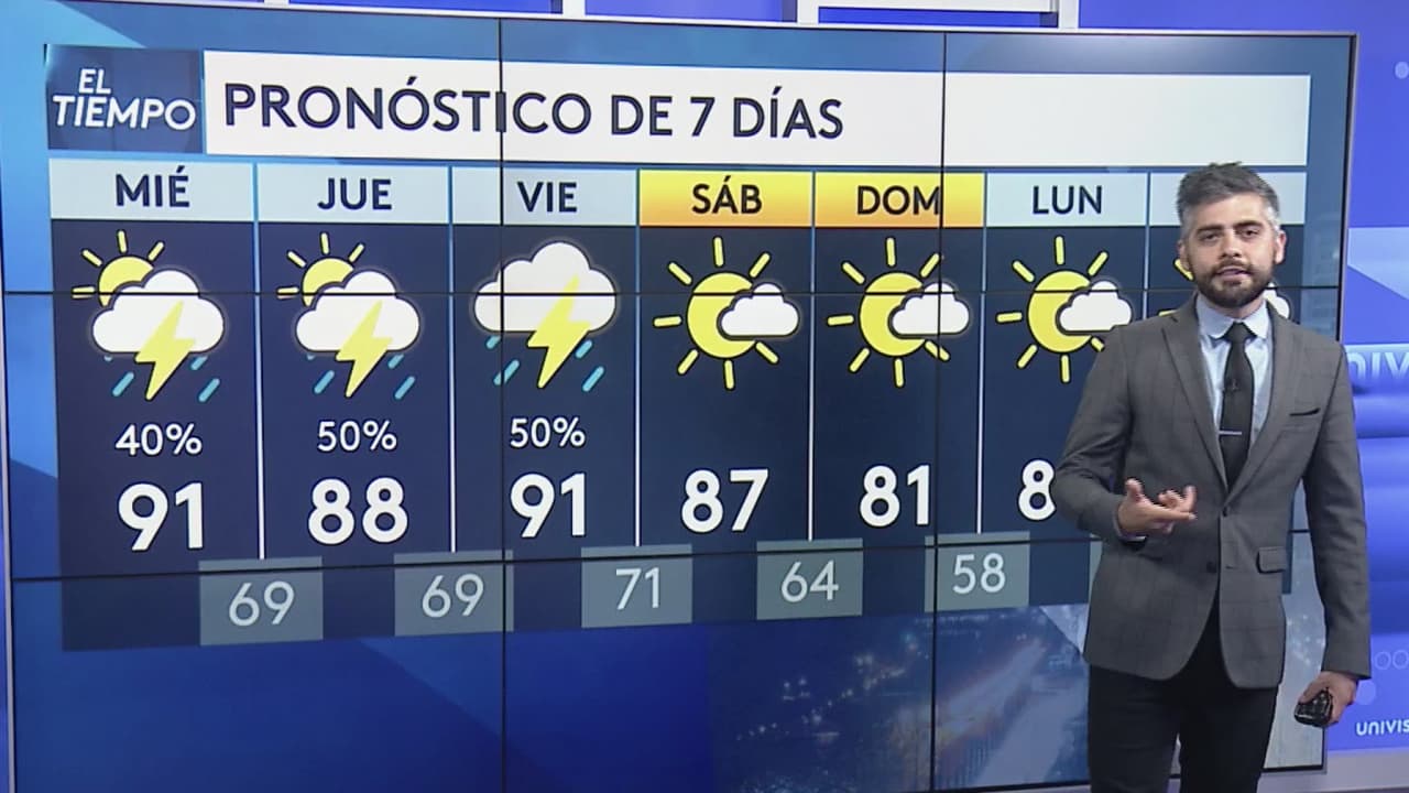 Se prevé una mitad de semana lluviosa, pero con un considerable aumento en la temperatura, la máxima se estima en los 91 grados.
