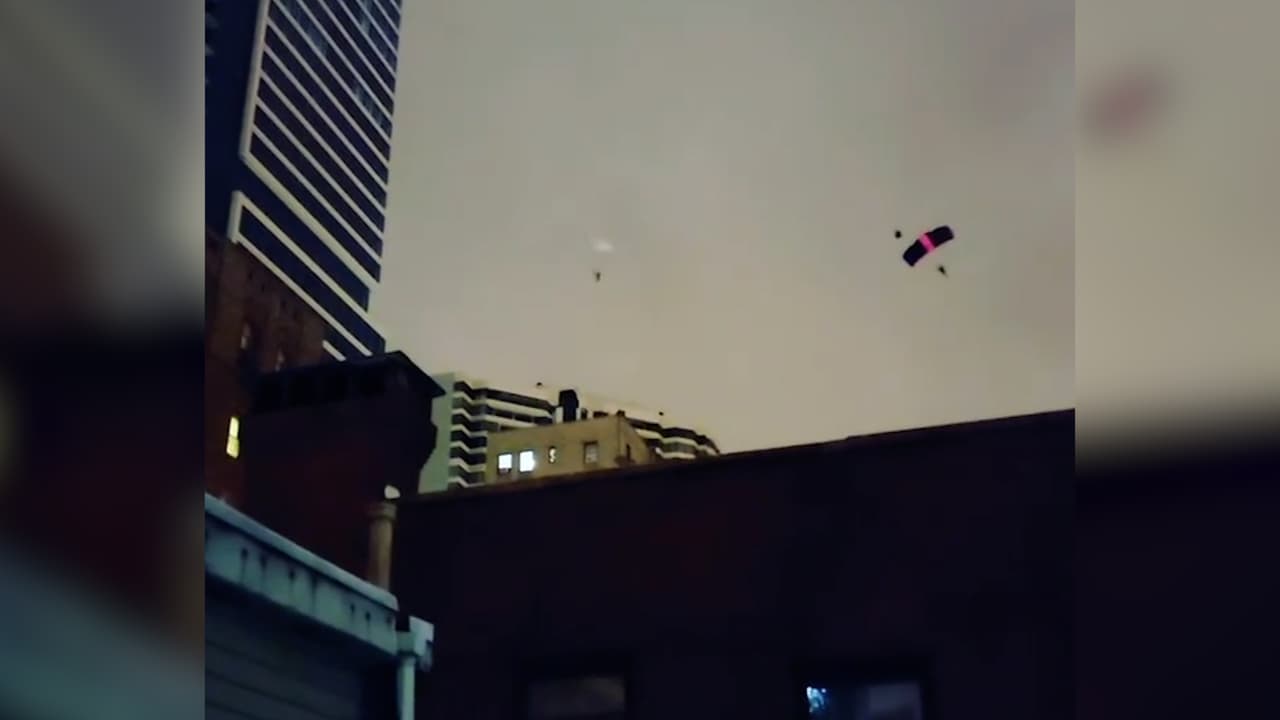 Paracaidistas quedan captados en video lanzándose desde un rascacielos de lujo