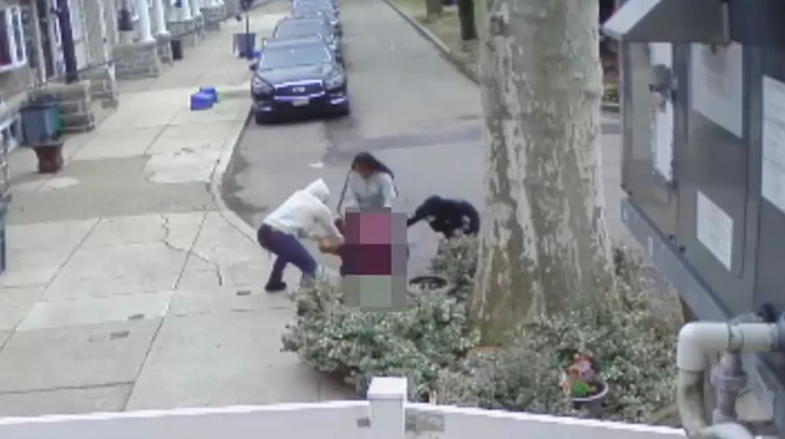 El video de vigilancia publicado por la policía muestra a tres mujeres acechando a Angelina Bellissima, de 78 años, durante dos cuadras antes de atacarla en la cuadra 2700 de South Smedley Street.