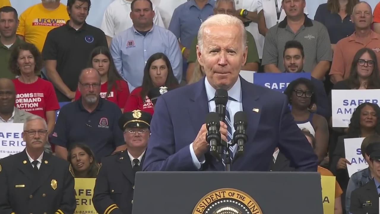 La aparición de Biden en Filadelfia es la segunda de tres paradas en el estado de campo de batalla de Pensilvania solo esta semana.