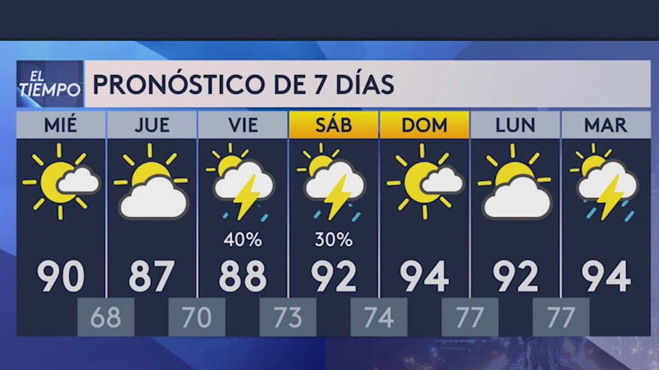 Se esperan altas temperaturas los sábados y domingos a mediados de los 90 grados con una humedad que los hace sentir cerca de 100 el sábado, hasta 103 grados el domingo y hasta alrededor de 106 grados (o más calientes) el lunes.