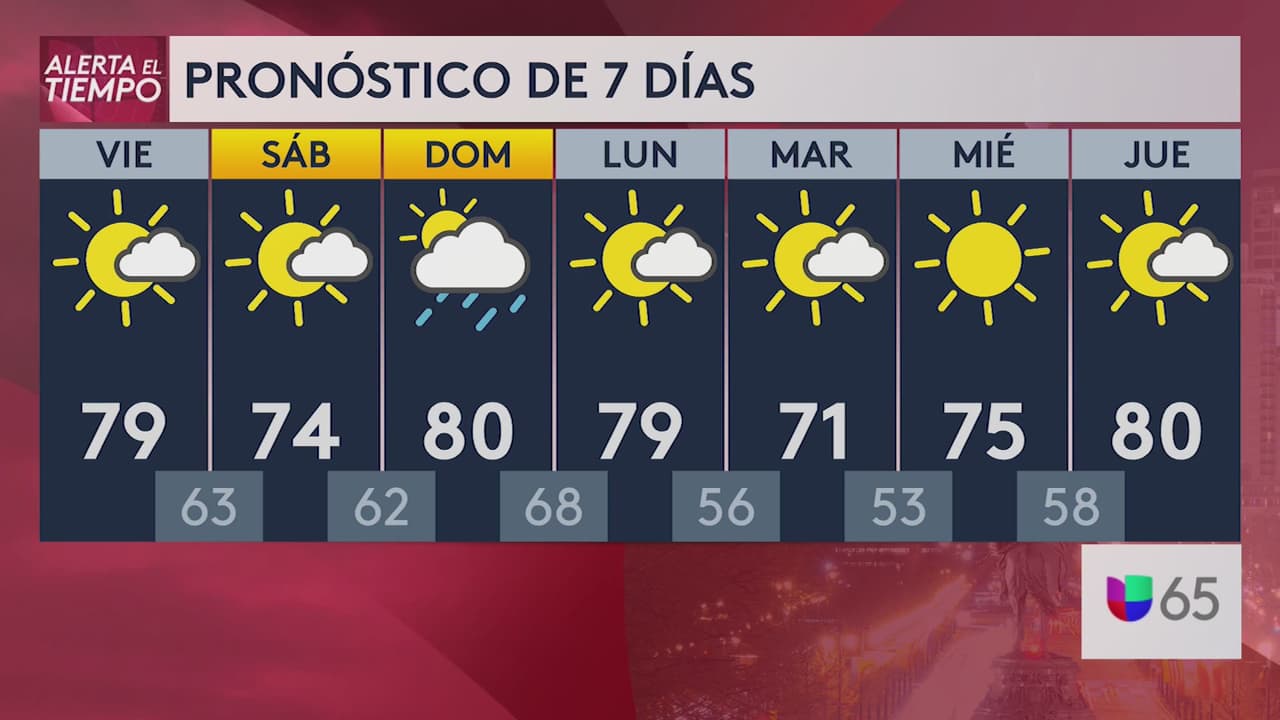 El viernes será nublado con posibilidad de algunos aguaceros dispersos. Un notable descenso en la temperatura en los agradables 78 grados Fahrenheit será la máxima durante el día.