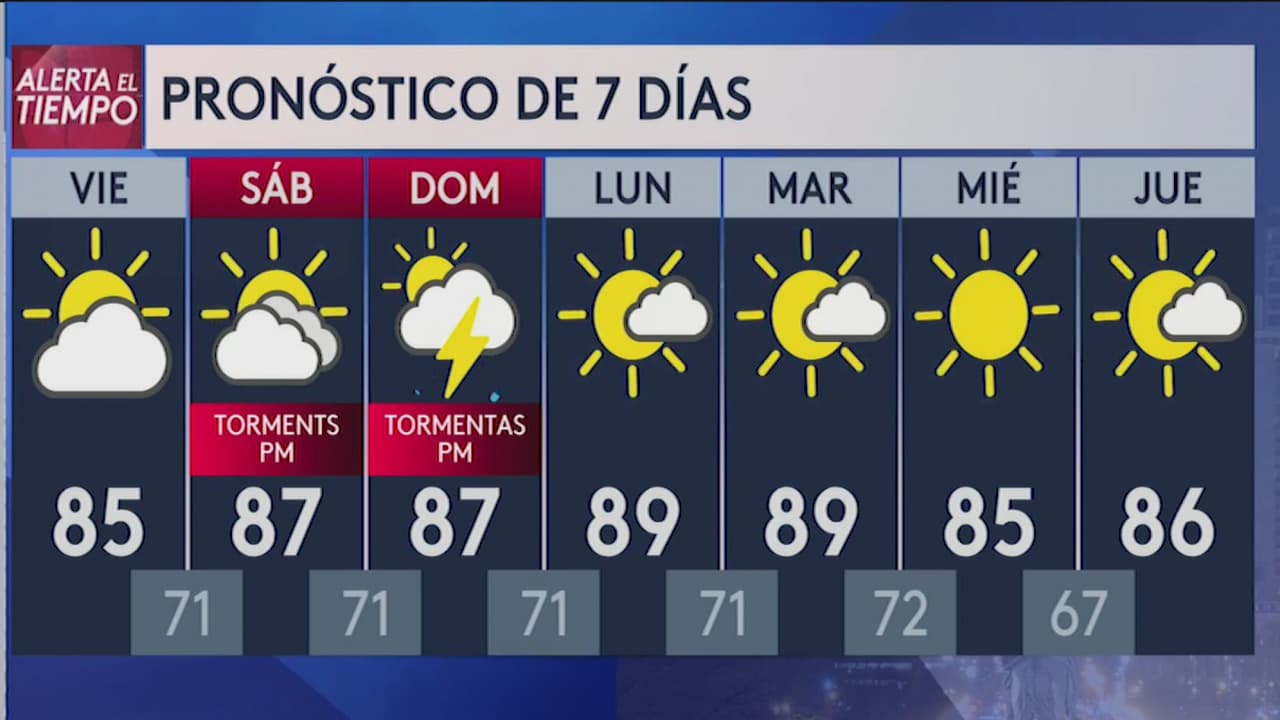 Será un día seco con temperaturas agradables en el rango de los 85 a 69 grados. La lluvia se espera durante el fin de semana.
