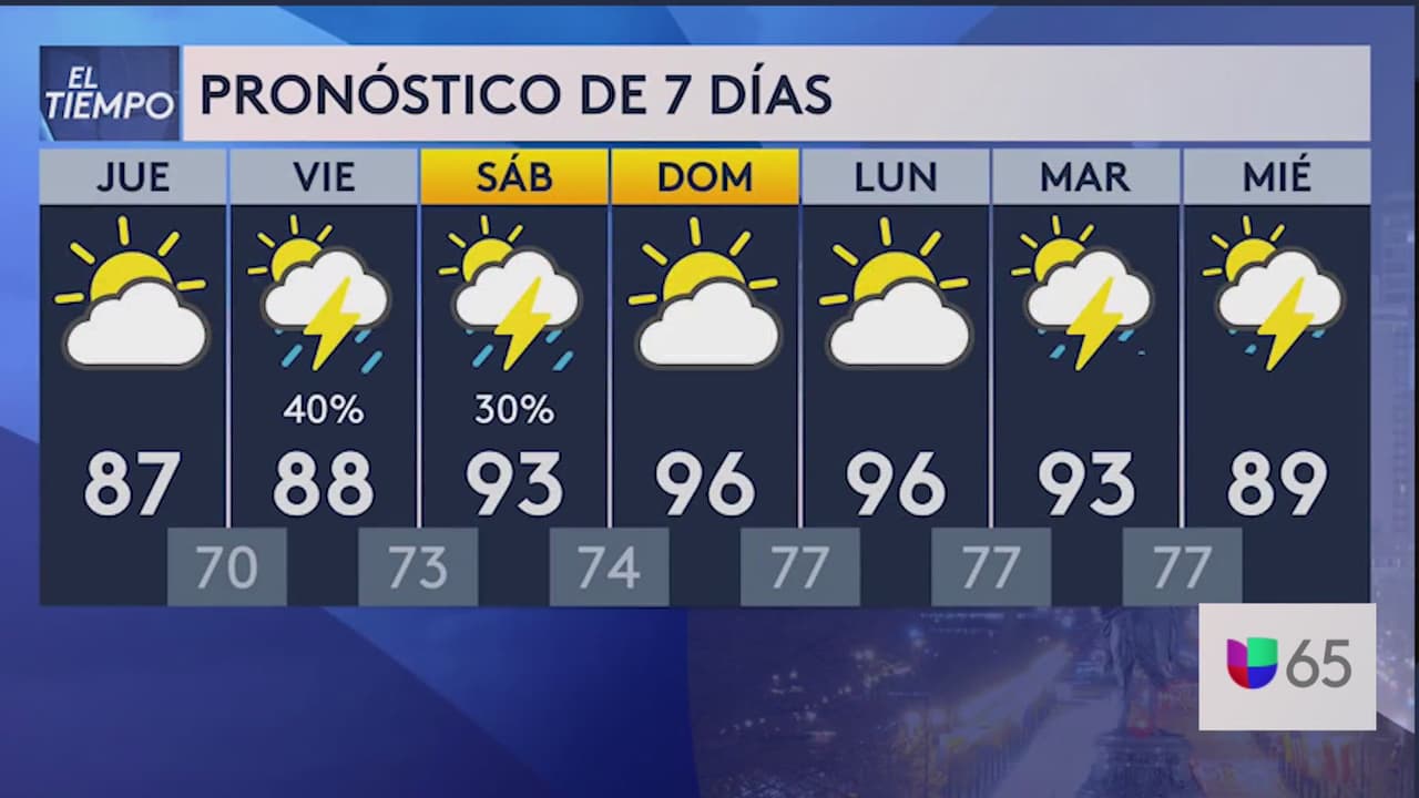 El jueves será mayormente nublado con temperaturas entre los 84 a 69 grados. Bandas de lluvia se esperan en la región el viernes, pero el fin de semana será uno seco y caluroso.
