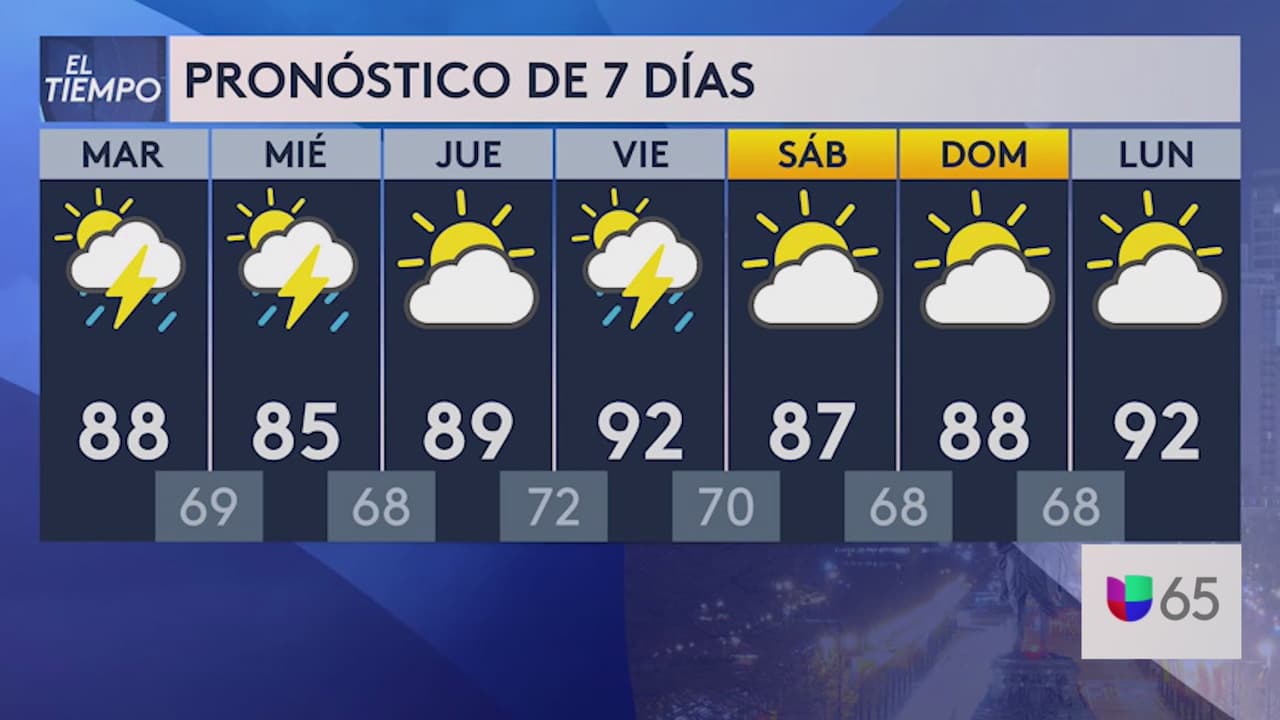 Se esperan tormentas para mediados de semana, impactando a Filadelfia y Nueva Jersey. El tiempo severo dejará lluvias localmente intensas y fuertes descargas eléctricas. Se recomendó mantenerse hidratado ya que las temperaturas alcanzarán los 90 grados.