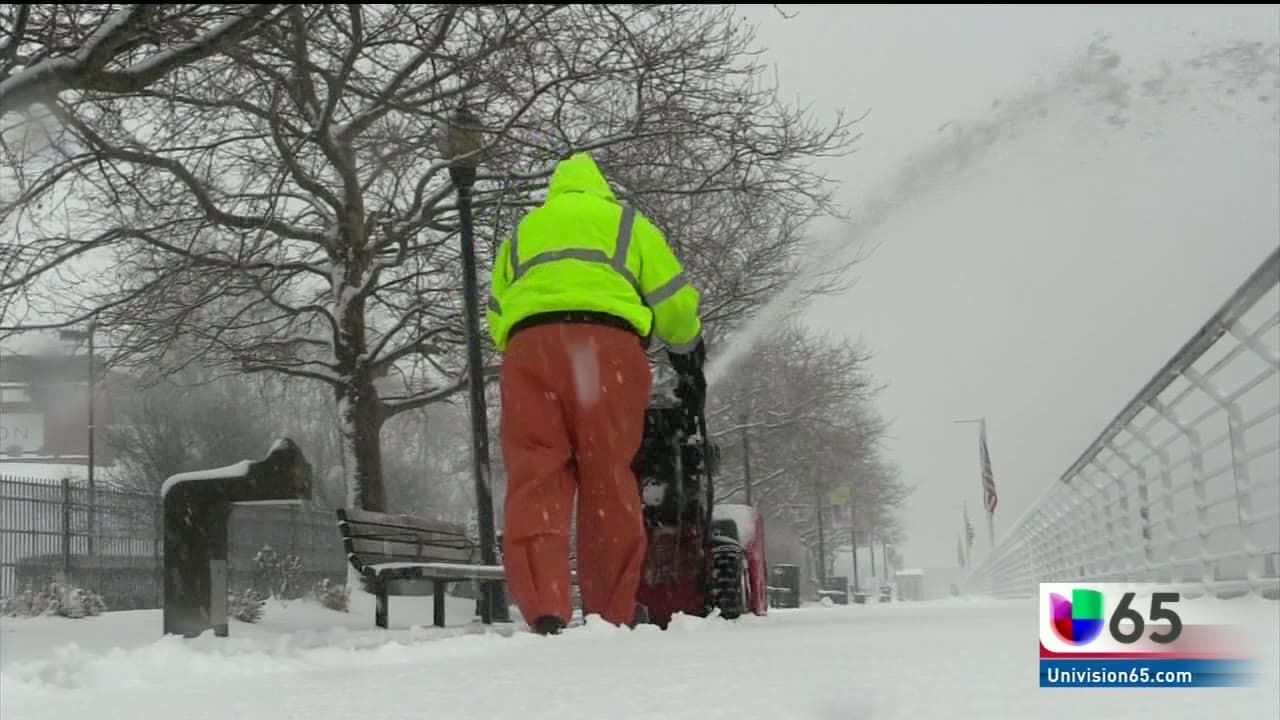 Residentes tratan de desempeñar sus labores normales durante la tormenta en la ciudad de Camden