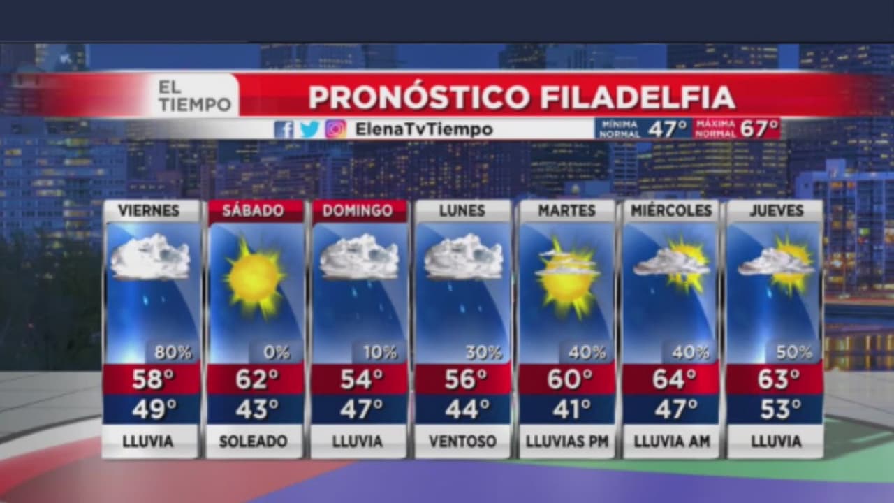 El fin de semana será lluvioso y con probabilidad de inundaciones repentinas en varias áreas de Filadelfia. La temperatura estará en los agradables 50 grados durante el día y en los 40 durante la noche.