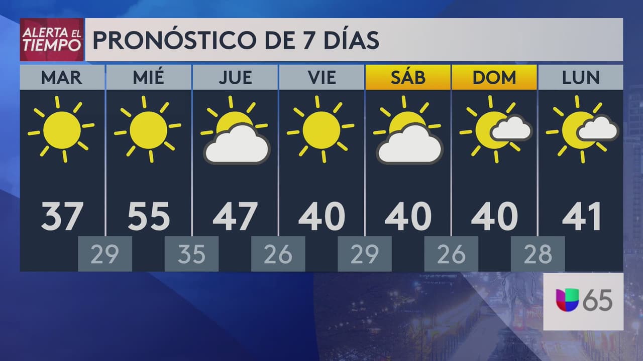 Aunque será un día seco, un descenso en la temperatura provocará que sea el día más frío de la semana con una máxima en los 37 grados Fahrenheit.
