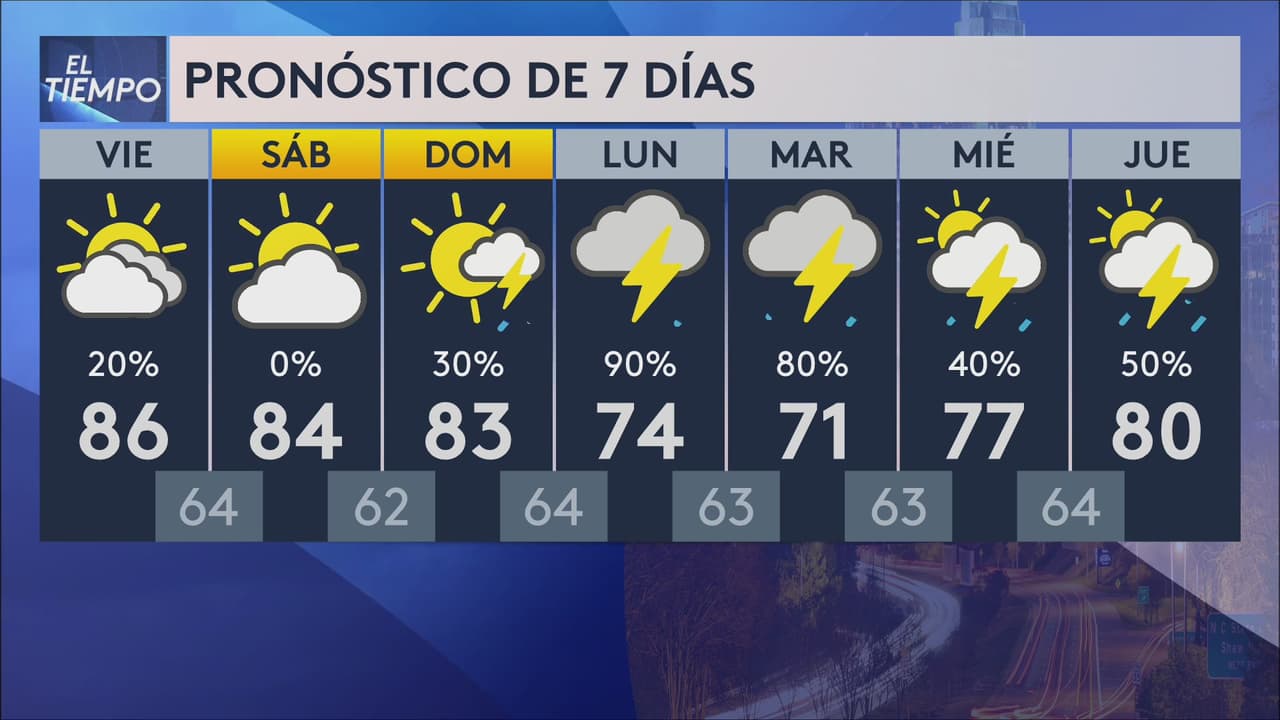 El pronóstico estará más tranquilo en la tarde del viernes. A partir de las 8 a.m. las temperaturas estarán en los 86 grados, con sólo un 20% de probabilidad de lluvias.