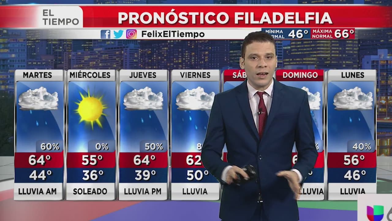 La lluvia regresa para la región de Filadelfia a partir del martes. La temperatura estará entre los 60 grados durante el día, pero un descenso drástico se tiene en pronóstico para horas de la noche, bajando hasta los 35 grados.