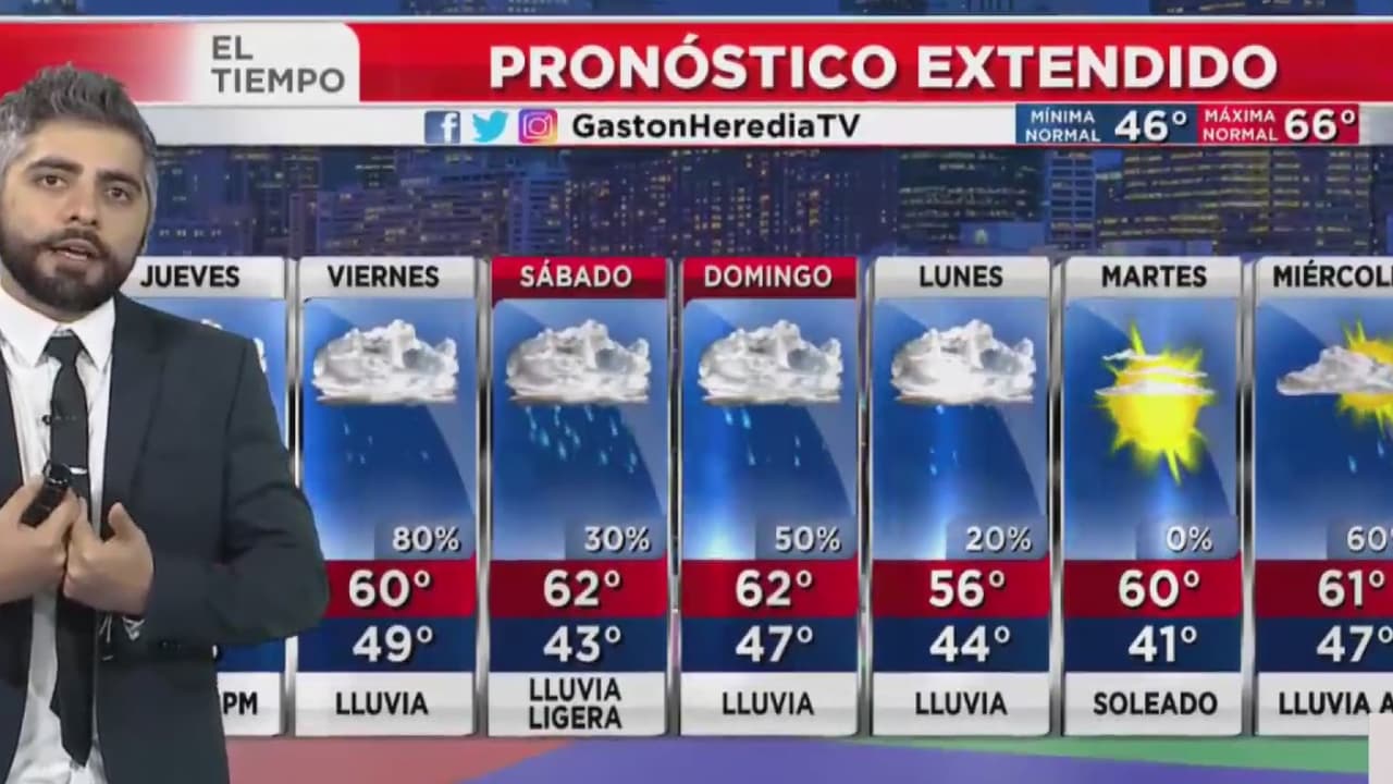El jueves será lluvioso y con un leve aumento en la temperatura, ascenderá hasta los 62 grados, en la noche se espera un clima agradable en los 48 grados.