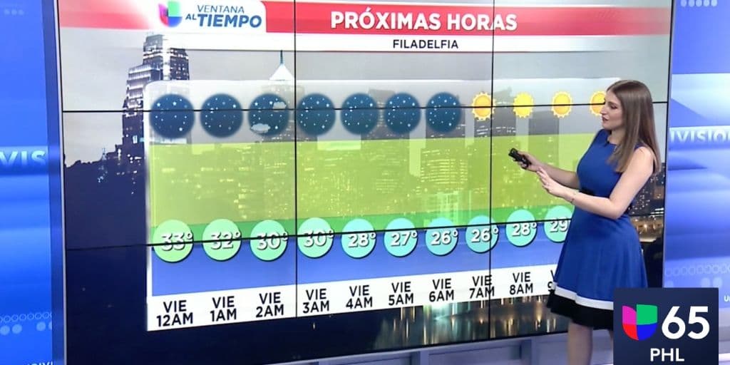 Una alta presión ártica en el sur de Quebec estará bajo control y tendremos un viernes día brillante y soleado, pero será muy frío con temperaturas de solo 33. Una brisa continua durante el día hará que los vientos estén en los gélidos 20 grados por la tarde. Durante el fin de semana, el panorama cambiará y tenemos un 80 por ciento de probabilidad de nieve en la zona de Filadelfia.