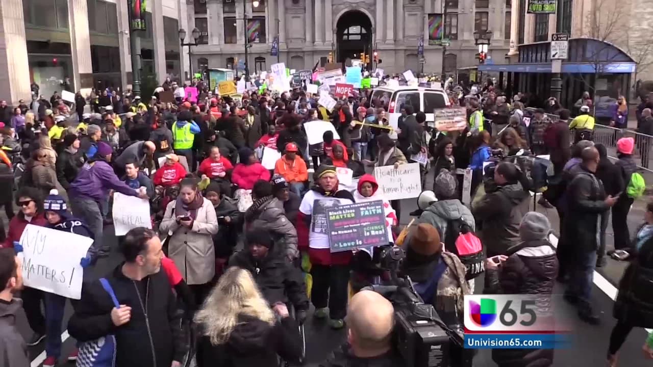 Un gran dispositivo de seguridad y protestas acompañaron a Donald Trump en su visita a Philadelphia.
