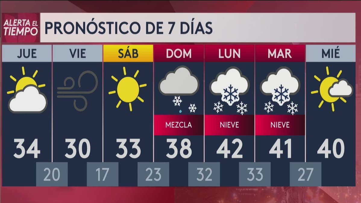 Los máximos estarán a mediados de los 30, pero cuando agregue las ráfagas de viento que podrían ser de más de 35 mph, se sentirá como los 19 a 13 grados o, con suerte, los 20 bajos durante todo el día. La probabilidad de tener nieve en la región aumenta para el fin de semana.