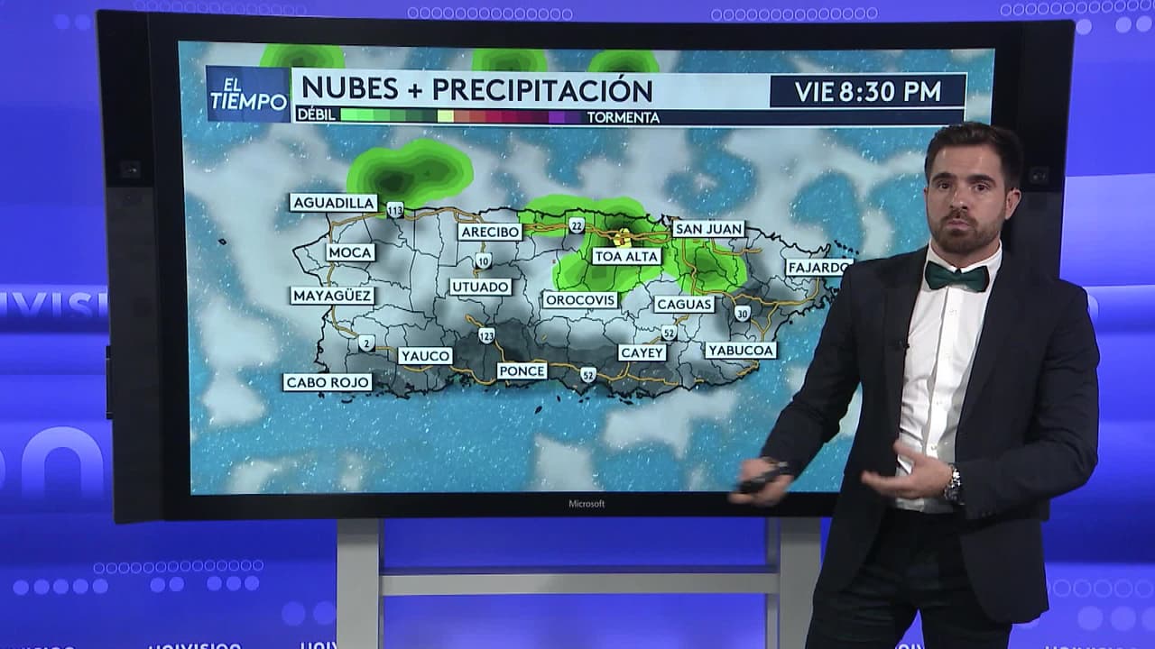 Espera temperaturas máximas alrededor de los 84 grados Fahrenheit durante la tarde de este viernes en Puerto Rico, así como cielos nublados y lluvias.