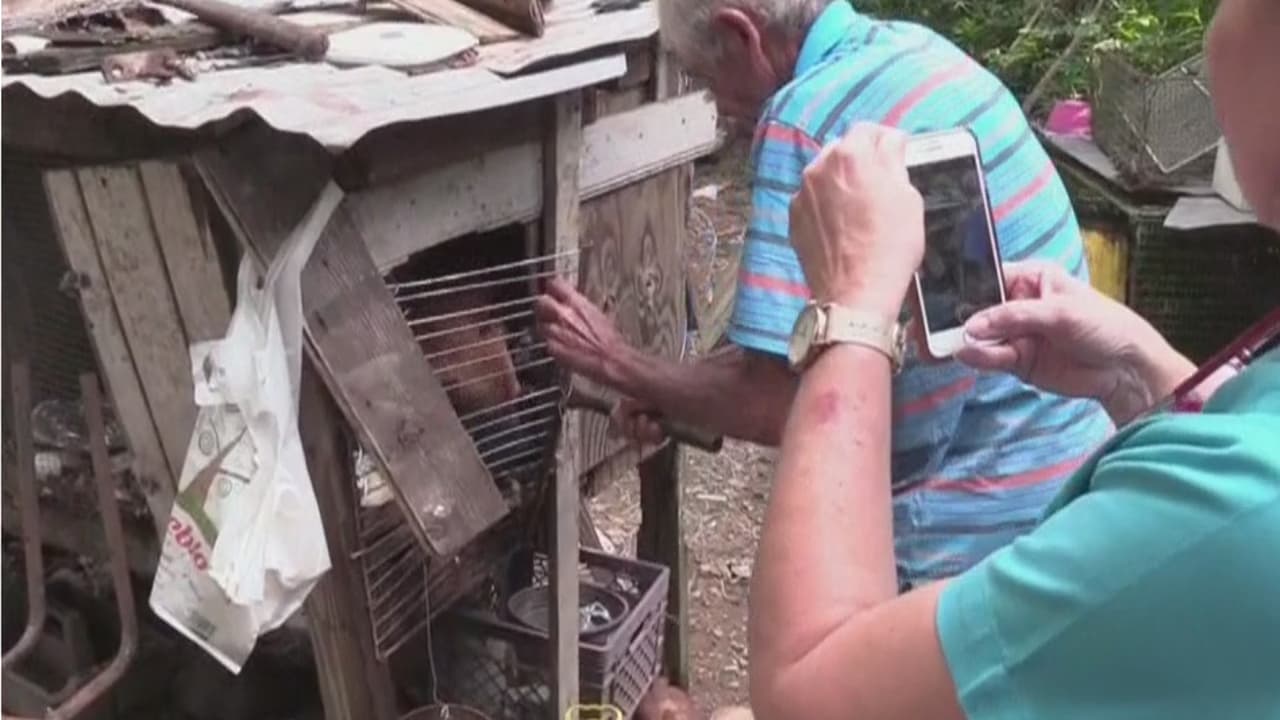 El animal estaba viviendo en malas condiciones encerrado en una jaula para gallinas. Según activistas de la organización Ángeles sin Voz, no es el primer caso de maltrato animal en este domicilio.