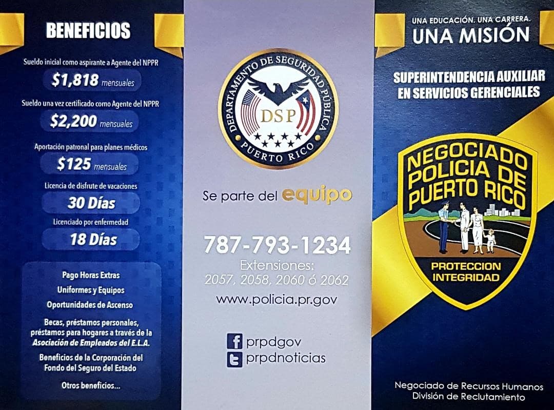 También se informó que el Negociado de la Policía está en el proceso de reclutamiento de candidatos que deseen unirse a la uniformada.