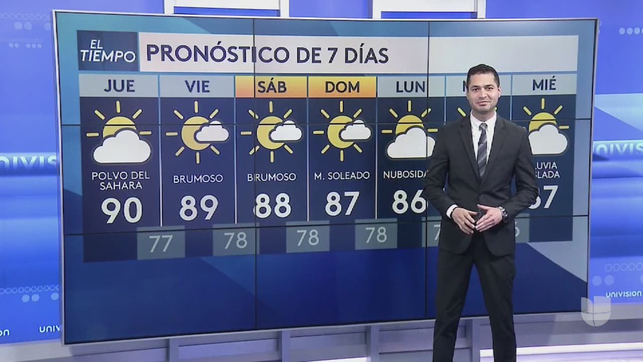 Se espera la presencia de polvo del Sahara hasta el domingo, por lo que hay que tomar precauciones. Las temperaturas estarán cálidas, con máximas de 90 grados.