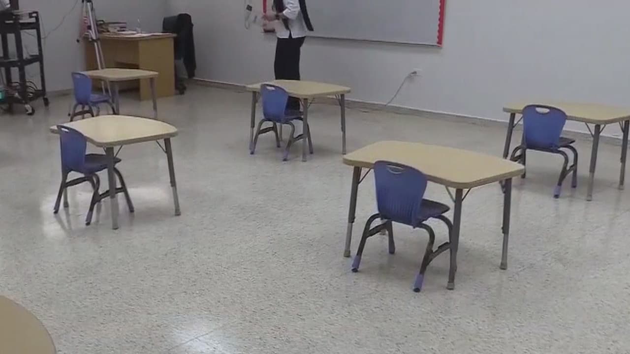 La secretaria de Salud, Elba Aponte, detalló el plan de regreso a clases, que incluye un número limitado de alumnos y horario reducido, así como uso de desinfectantes y cubrebocas.