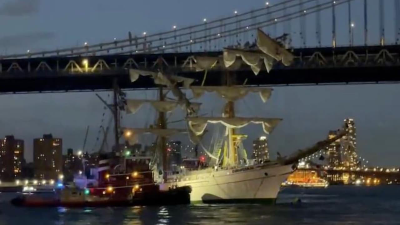 Buque de la Marina de México choca contra el Puente de Brooklyn en Nueva York