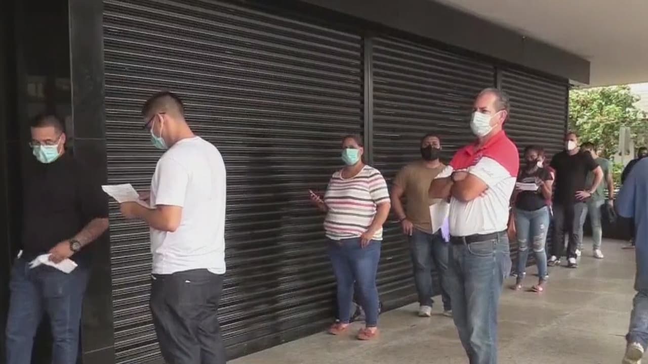 Ciudadanos realizan largas filas para reclamar beneficios de desempleo
