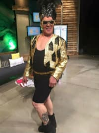 Con su radio en mano, sus espectaculares gafas decoradas, su peculiar ropa y hasta plumas en la cabeza entró bailando como de costumbre.