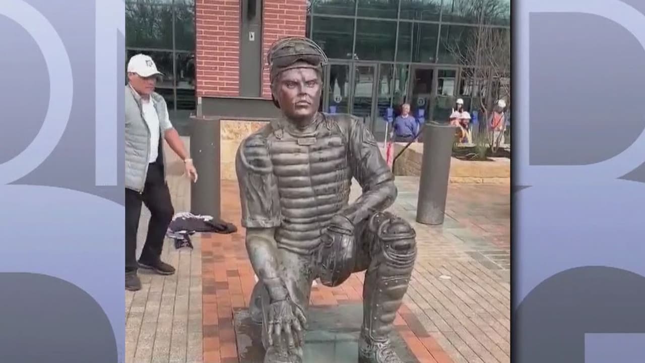 Develan estatua de Iván Rodríguez en el estadio de béisbol de los Vigilantes de Texas