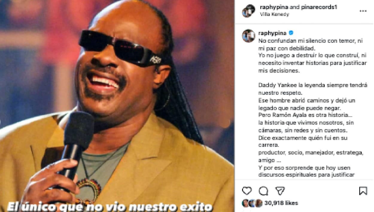 El productor Raphy Pina publicó un mensaje en Instagram, junto a fotos hasta de la leyenda Stevie Wonder. Pretende desmentir algunos de los argumentos de su compadre y ex socio, Ramón Ayala, Daddy Yankee, en la demanda federal en su contra.