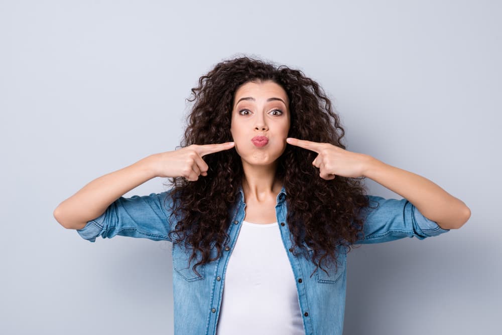 2. Succiona las mejillas de tal forma que parezca que pones boquita de pez.