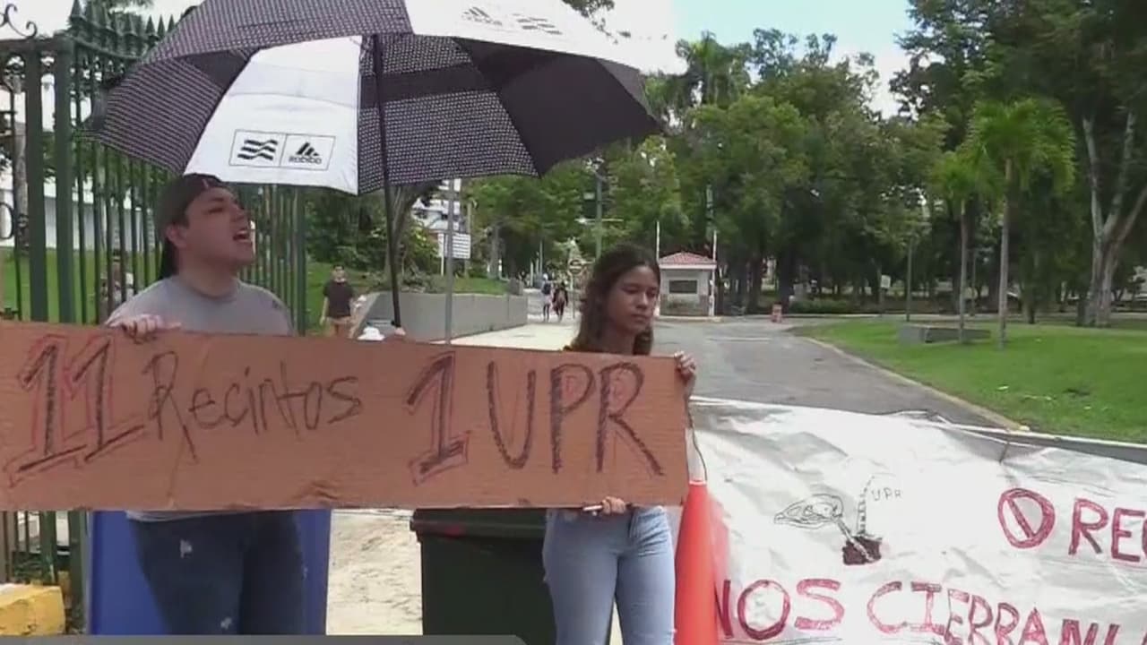 Un grupo de estudiantes cerró los portones del reciento de Río Piedras para mostrar su rechazo al recorte que 70 millones de dólares a la UPR que anunció la Junta para el próximo año fiscal.