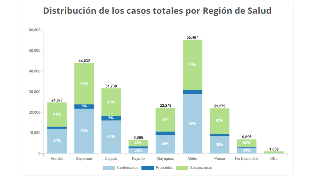 La zona metropolitana de Puerto Rico es la que lidera los casos de coronavirus con 28,796 casos confirmados, 24,630 sospechosos y 2,041 probables.