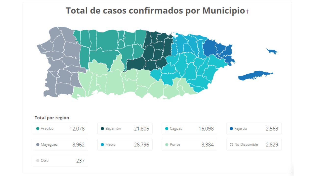 Las muertes por coronavirus también son más altas en la región metropolitana (29%), Bayamón (24%) y Caguas (15%).