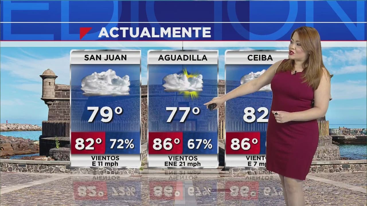 Espere temperaturas alrededor de los 80 grados Fahrenheit con cielos nublados y lluvias intensas para el resto de la tarde.