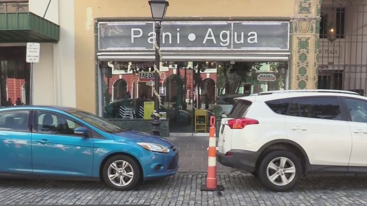 Autoridades investigan las cámaras de seguridad para analizar el incidente entre un policía y un joven que presuntamente intentaba forzar la cerradura del restaurante Pani Agua en San Juan.