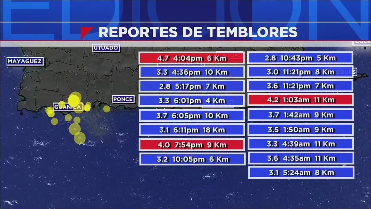 La magnitud de las últimas réplicas del terremoto que se han dado en Puerto Rico